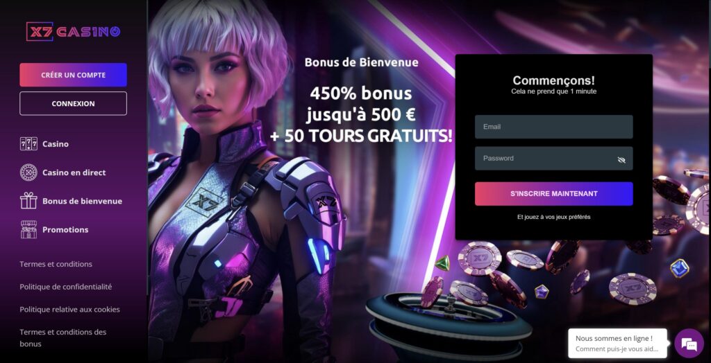 X7 Casino | 450% jusqu’à 500 € + 50 FS | x30 | +5000 jeux | 48h-96h | ✅ Large choix de cryptomonnaies |