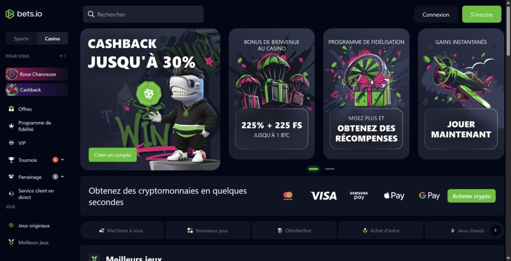 Avec plus de 3 100 jeux (machines à sous, casino en direct), Bets.io collabore avec des éditeurs renommés comme NetEnt ou Pragmatic Play. Les jeux, certifiés eCOGRA, assurent l’équité. Cependant, l’interface est jugée sombre et peu ergonomique, sans application mobile dédiée.